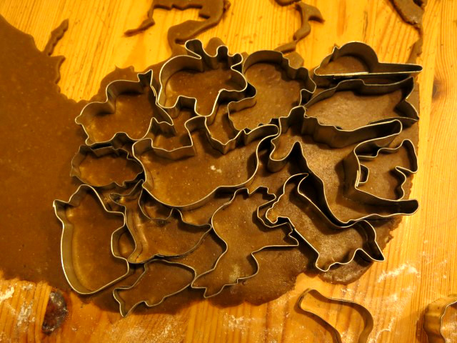 Als Kind durfte ich immer aus dem ostpreußischen Lebkuchenteig, der schon Wochen vorher „angeteigt“ wurde und anschließend über dem Fernseher im Wohnzimmer ruhte, Plätzchen ausstechen, weil das am einfachsten ging. Das waren dann die Kinderkekse. Und es gab ein selbstgemachtes Lebkuchenhaus aus demselben Teig. Das wurde aber erst aufgegessen, wenn der Lebkuchen versteinert war, also so um Ostern herum (ungelogen).